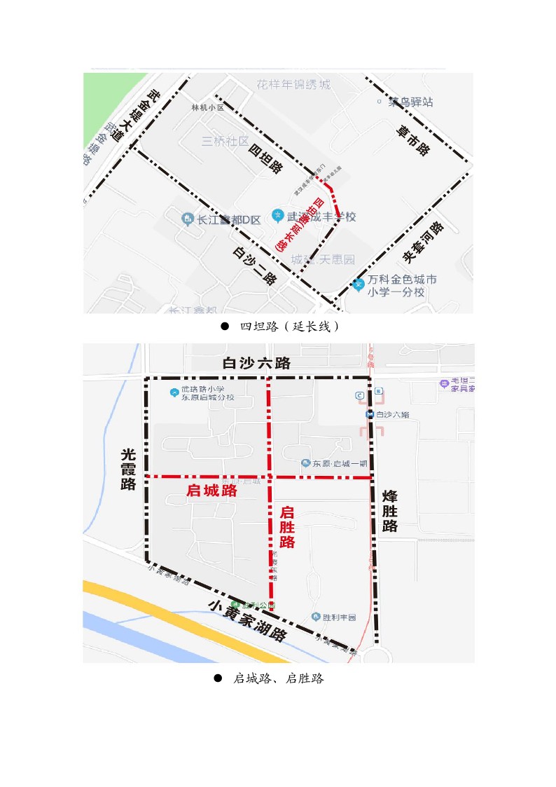 因城市发展建设,部分路网发生变化,现对部分道路名称予以注销,硚口区南垸坊路、长福路;东湖风景区鼓架山一路、鼓架山二路、鼓架山三路、建强一路、滨湖花园小路、山脚芦路。