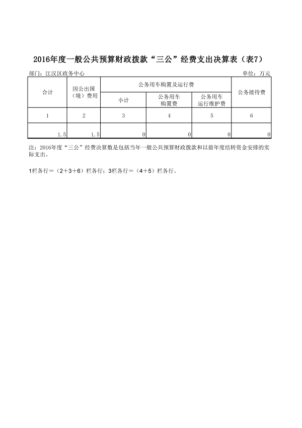七、一般公共预算财政拨款"三公"经费支出决算表(表7)