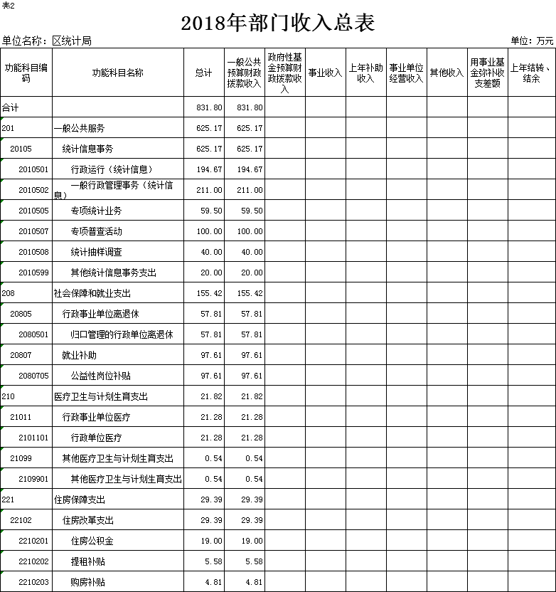 表2.2018年部门收入总表