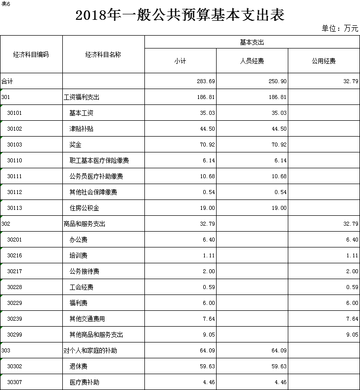 表6.2018年一般公共预算基本支出表