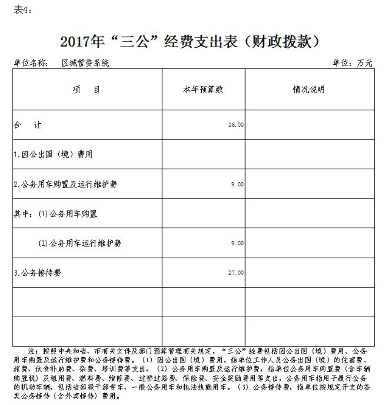 欧亚国际(中国)官方网站 城管委2017年部门预算(及“三公”)公开文字说明及表格