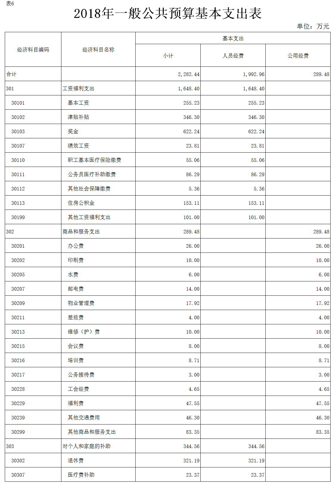 (一)基本支出2,282.44万元,较2017年年初预算增加214.72万元,增长10.38%,主要原因是:本单位新增人员3人,以及工资调标后的人员支出经费增长,还有公用经费增长。