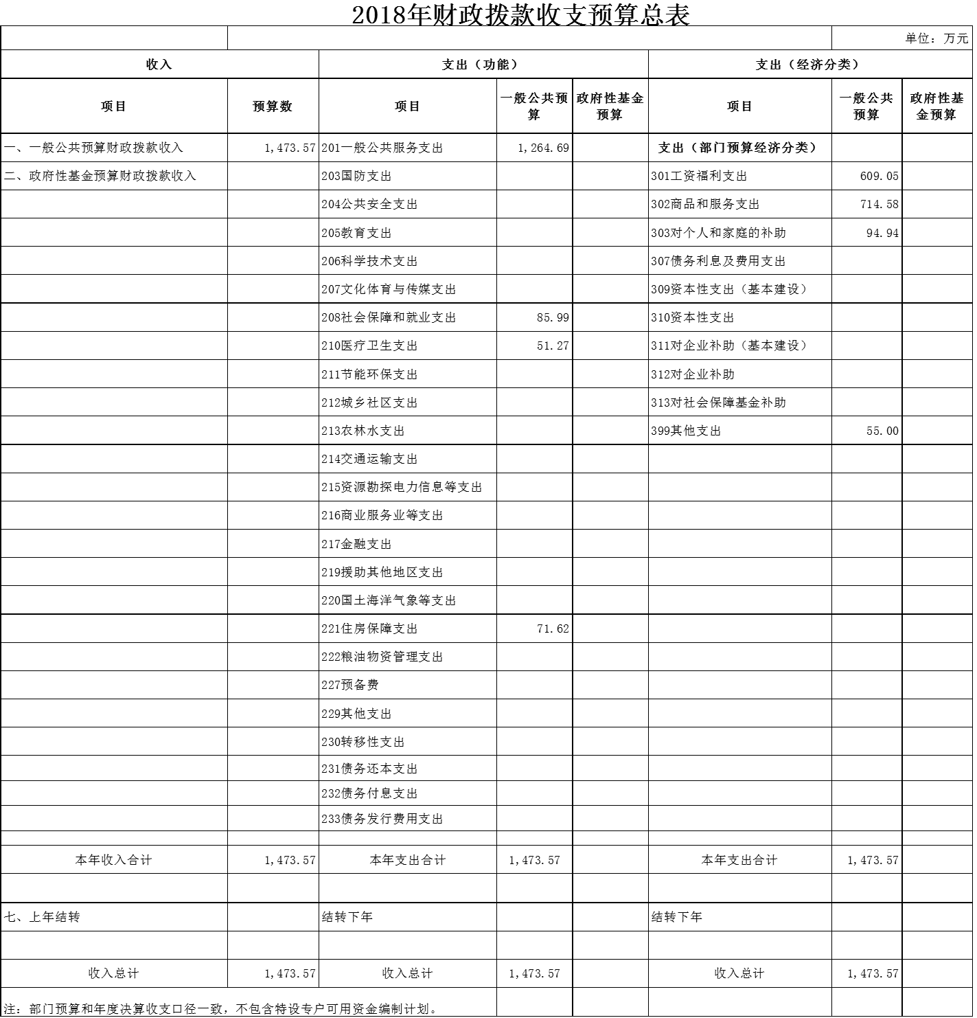 2018年一般公共预算财政拨款(补助)预算数1473.57万元,安排情况如下: