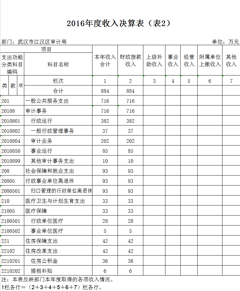 2016年度当年收入合计884万元。其中:财政拨款收入(含政府性基金拨款)884万元,占本年收入100%。