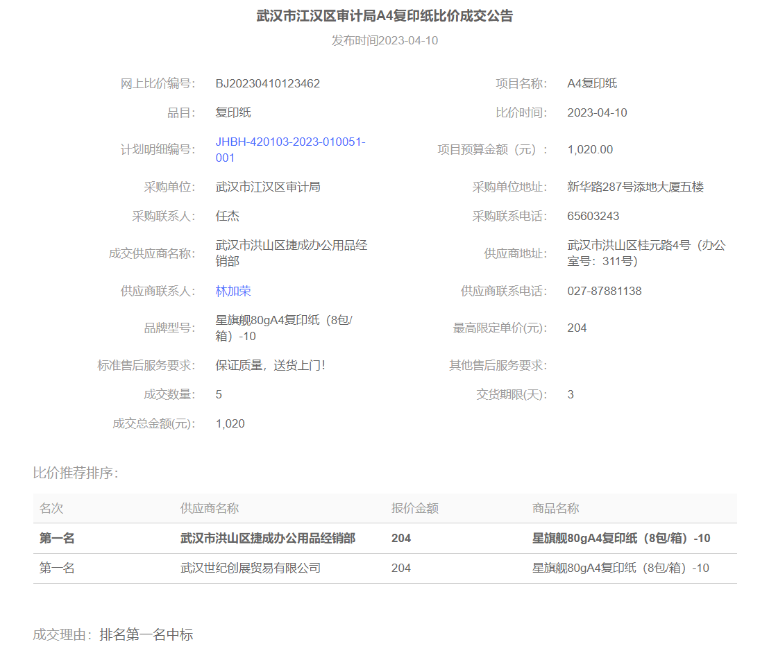 | 标 题 | 欧亚国际(中国)官方网站 审计局A4复印纸比价成交公告 | ||