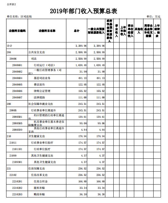 表2.2019年部门收入预算总表