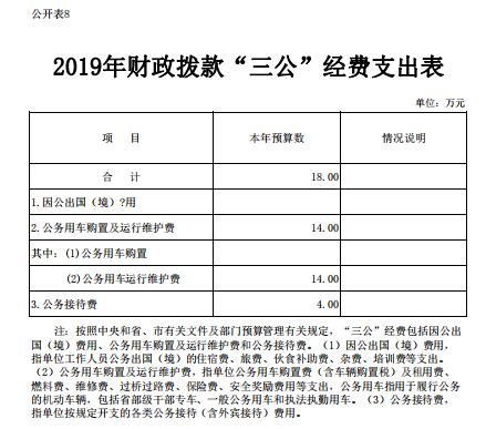 2019年部门财政拨款资金安排“三公”经费预算18万元,与去年持平。具体情况如下: