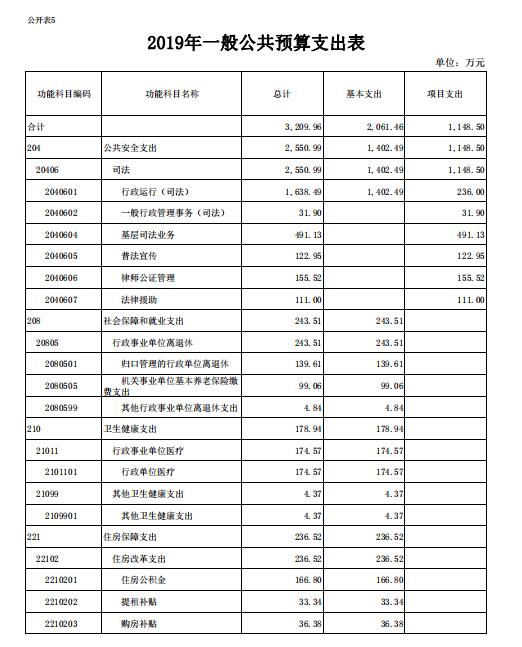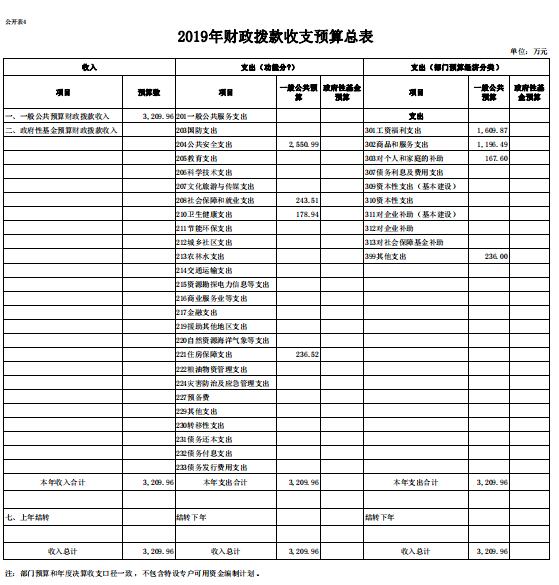 2019年一般公共预算安排支出3209.96万元,具体情况如下:
