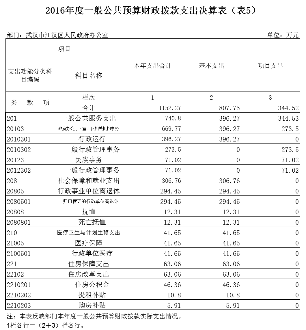 2016年度本年支出合计1152.27万元。其中:基本支出807.75万元,占本年支出70.1%,项目支出344.52万元,占本年支出29.9%。