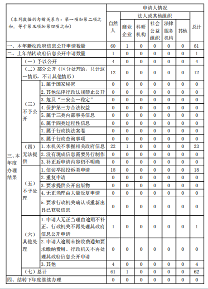 三、收到和处理政府信息公开申请情况