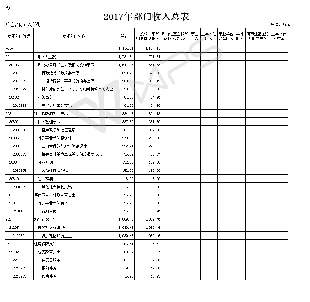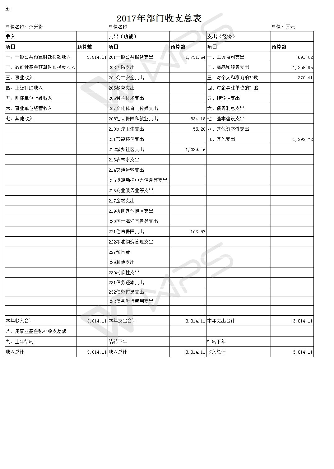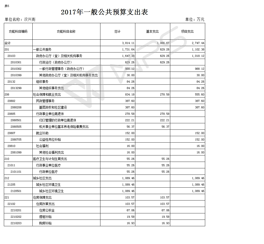 汉兴街办事处由单位本级预算组成,行政单位1个。