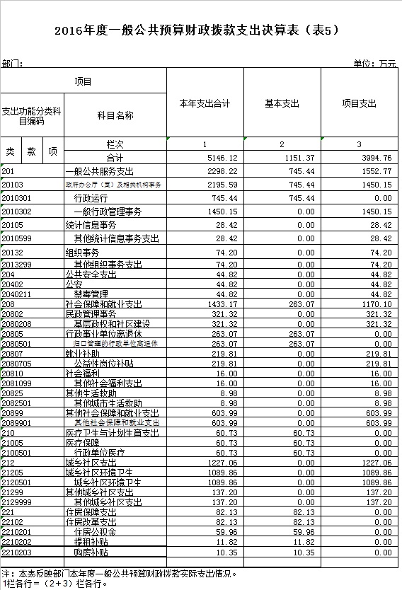 2016年度本年支出合计5161.12万元。其中:基本支出1151.37万元,占本年支出22.31%,项目支出4009.75万元,占本年支出77.68%。