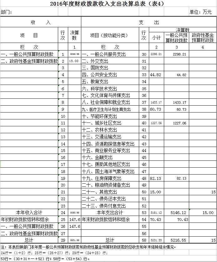 2016年度财政拨款(含政府性基金拨款)收支总计5083.95万元。