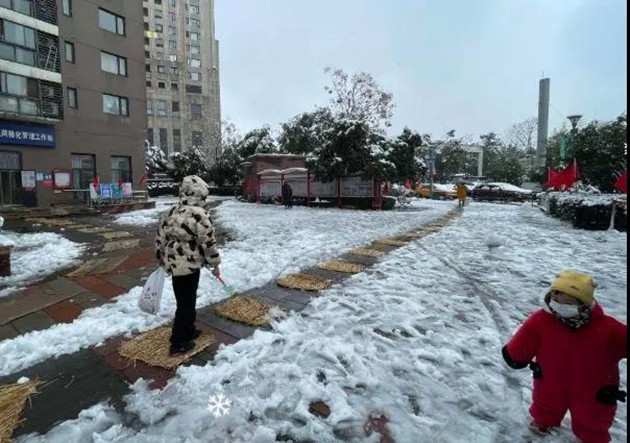 和祥里社区组织社区工作者、热心居民群众和志愿者与时间赛跑,与飞雪争锋。大家在社区的组织下,分工配合、团结协作,有人铲雪,有人除冰,有人铺麻袋,有人撒盐防滑……凛冽寒风中,大家忙碌的身影在皑皑白雪中形成一道亮丽的风景线,热情和团结的精神让这个冬日显得格外的温暖。