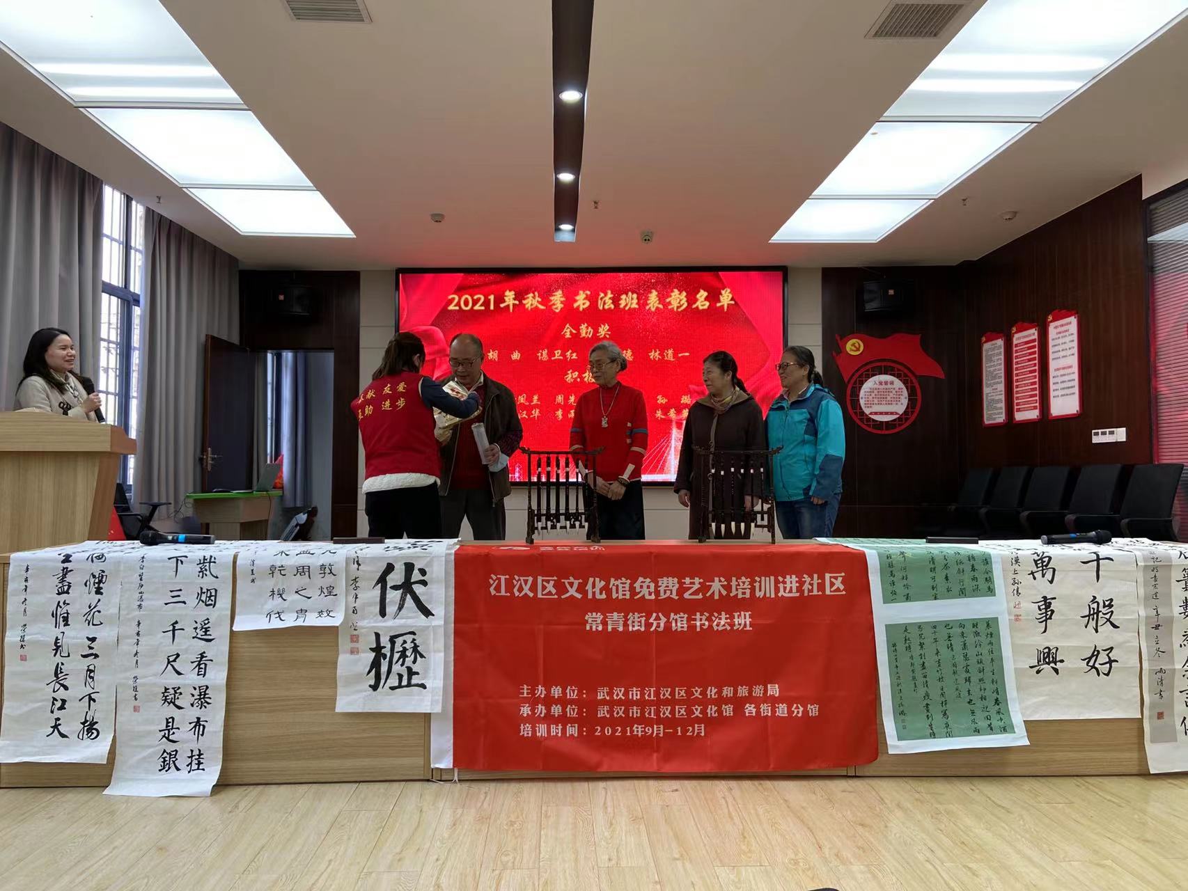 结业课上,欧亚国际(中国)官方网站 文化馆负责培训的汪户楣,郭子筝为同学们授予了结业证书,郭子筝还带来了精彩的笛子表演,学员们一边听着悠扬的笛声一边回顾过去三个月的学习时光。街文化站为17名学员分别颁发了全勤奖,积极奖。学员们也在王月香老师的指导下完成了秋季班的最后一次课堂练习,写对联。