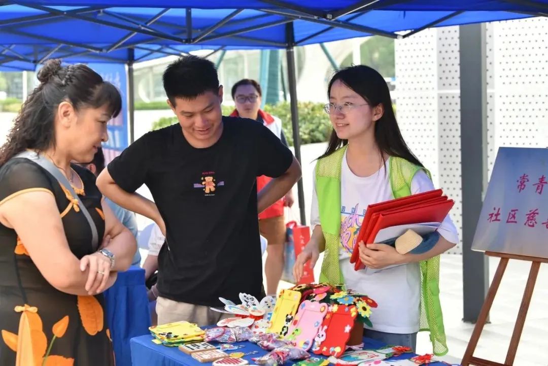 常青街道社会工作服务站工作人员向爱心购买人士讲解着每一份手工艺品背后的故事,“建筑模型、水晶贴画、串珠制品......这些都是我们阳光驿站学员自己制作,有的可能花费一周甚至好几个月完成。”在介绍设计首个“常青果果”慈善爱心形象IP时,常青街道社工站相关负责人介绍:“常青街道自2018年起便开始关注残疾人服务工作,并积极助推‘阳光’力量,鼓励残疾人变为志愿者,‘常青果果’温暖的形象寓意着每个人心中善意的芽都会结出果实。”
