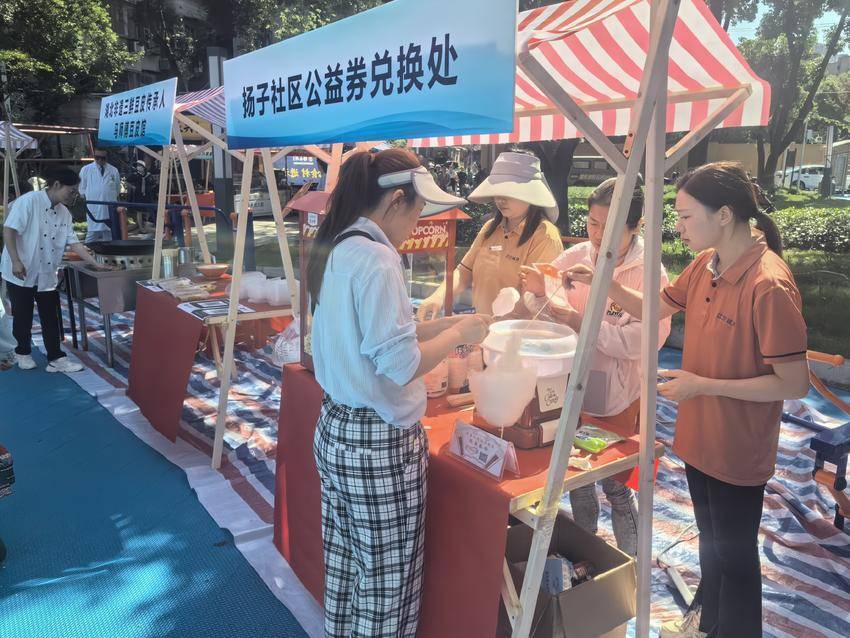 居民们通过爱心捐款及爱心消费获得“公益兑换券”,凭券可兑换免费爆米花、棉花糖和非遗糖画,居民们在享受购物乐趣的同时,也能感受到社区公益文化与爱心相传的“甜蜜”。
