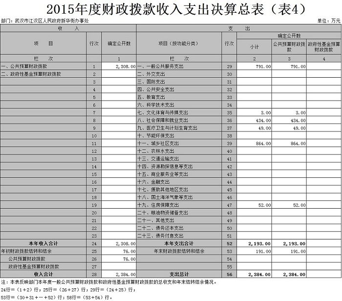 2015年度欧亚国际(中国)官方网站 新华街办事处部门决算