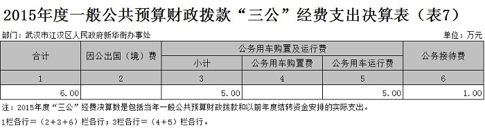 七、2015年度一般公共预算财政拨款“三公”经费支出决算表(表7)