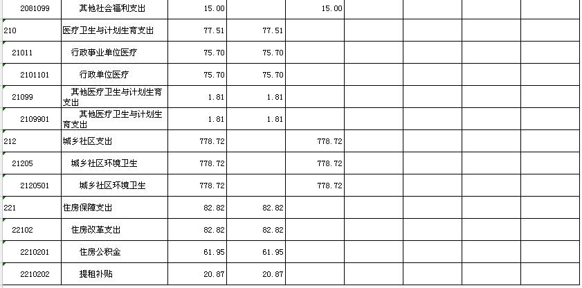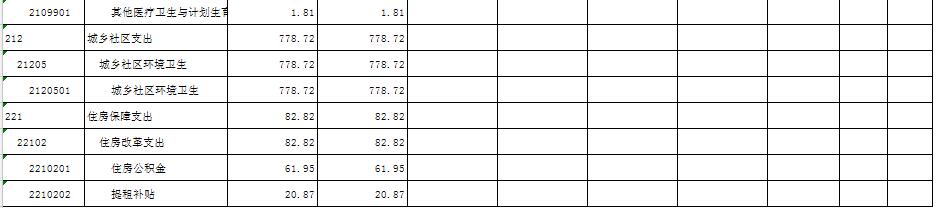 一般公共服务支出1851.39万元;社会保障和就业655.26万元;医疗卫生与计划生育支出77.51万元;城乡社区事务778.72万元;住房保障支出82.82万元。