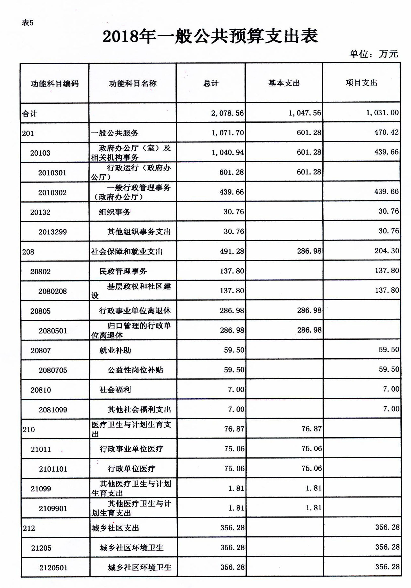一般公共服务470.42万元;社会保障和就业支出204.30万元;城乡社区支出356.28万元。