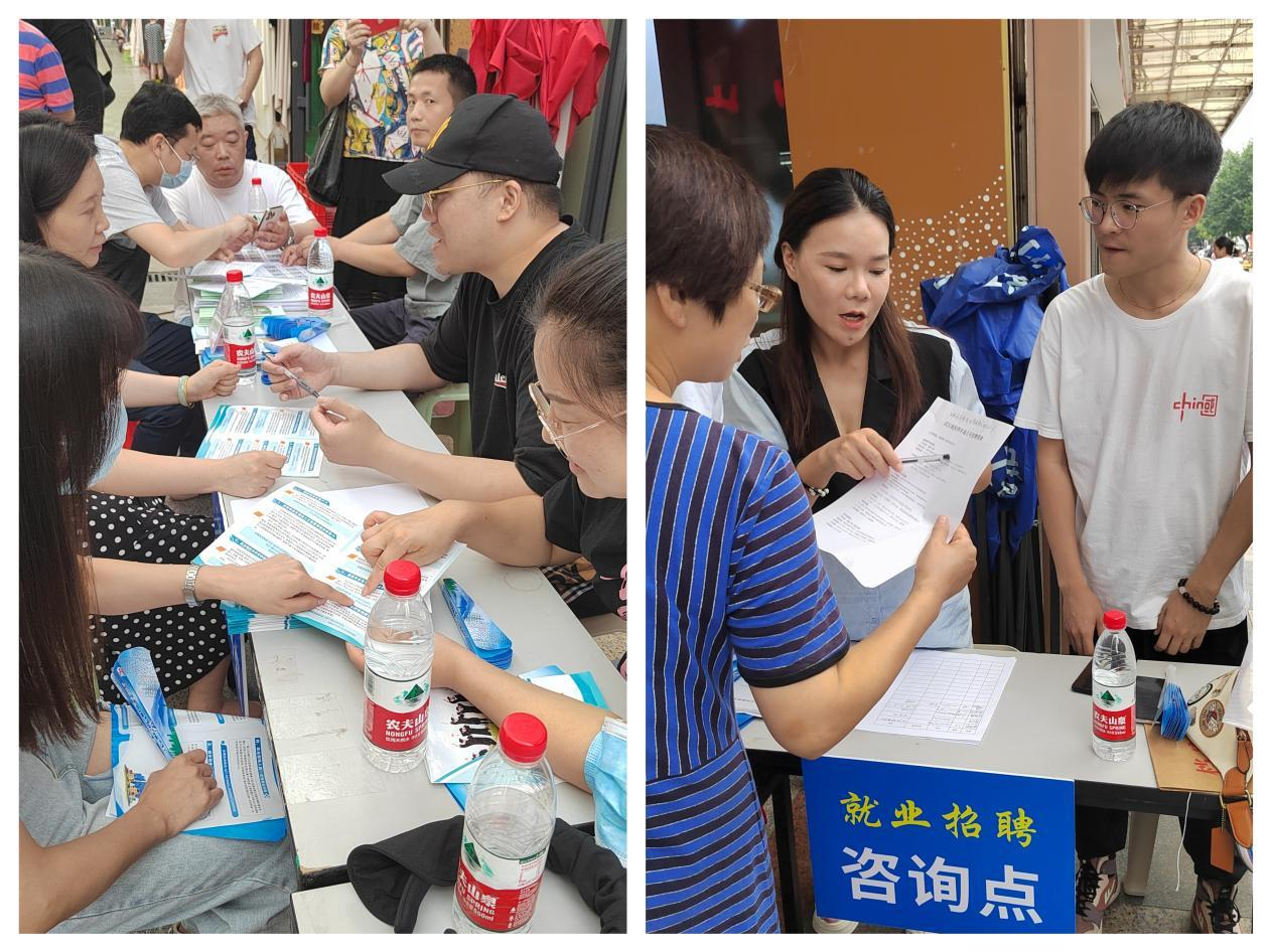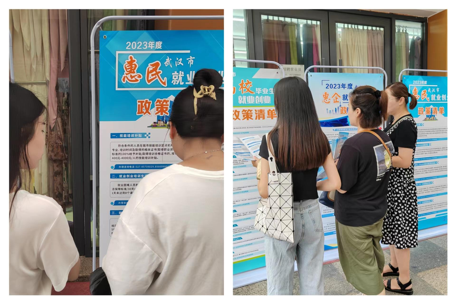 摸清底数,强化对接。活动开始前,社区通过走访,全面摸清本辖区各类就业援助对象基本情况和求职意向,积极联系辖区各类用人单位收集岗位信息,动员经营良好、社会责任感强的企业开发对技能、学历、年龄不做特别要求的岗位,拓展困难群众就业渠道。同时,对接交通银行和人力资源公司参与集市活动,丰富政策宣传内容、扩大覆盖面。主场驻点,优化服务。在活动主会场,设置了惠民、惠企、高校毕业生、创业担保贷款、行政审批和就业招聘等六个点位,工作人员面对面向居民、市场商户讲解各项优惠政策,并针对居民咨询的问题逐一进行解答。“我这个年龄有合适的岗位吗?”招聘点位上热闹非凡,共发布了保洁、停车场收费员等5类招聘岗位,工作人员对前来咨询的居民详细介绍岗