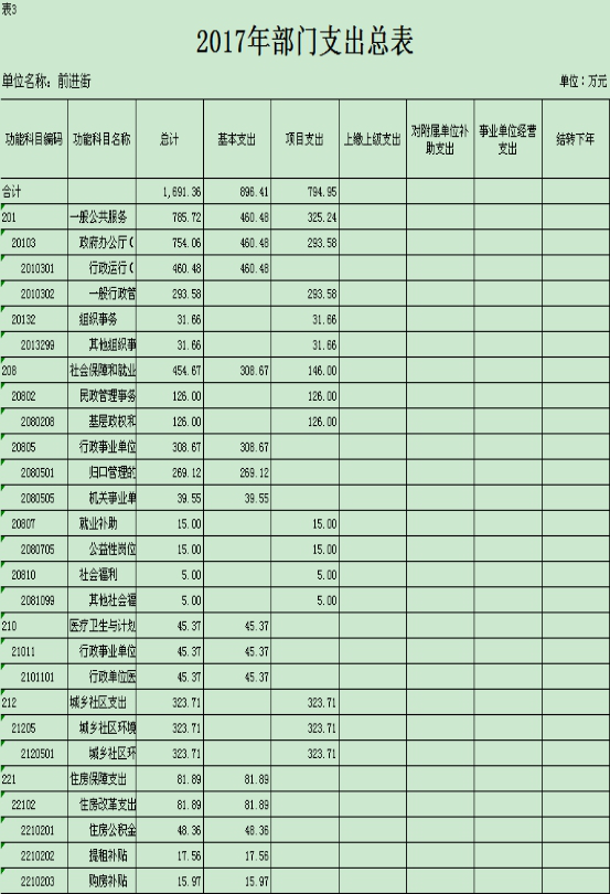 2017年前进街部门预算(及三公经费)公开文字说明及表格