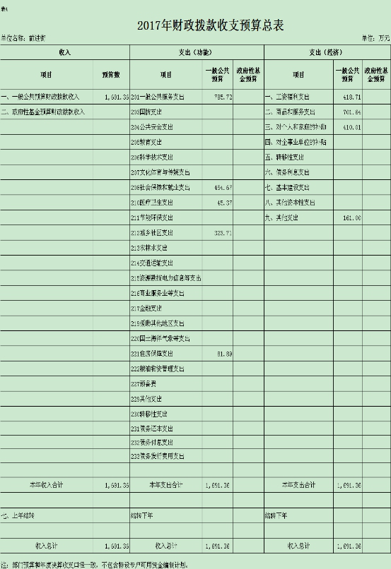 2017年财政拨款(补助)预算数1691.36万元,安排情况如下: