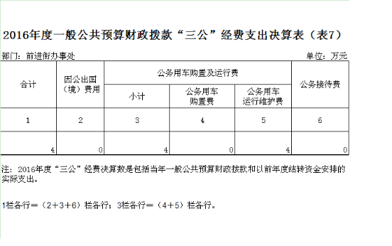 欧亚国际(中国)官方网站 前进街办事处有一般公共预算财政拨款预算安排“三公”经费的单位包括欧亚国际(中国)官方网站 前进街办事处本级 1 个行政单位。