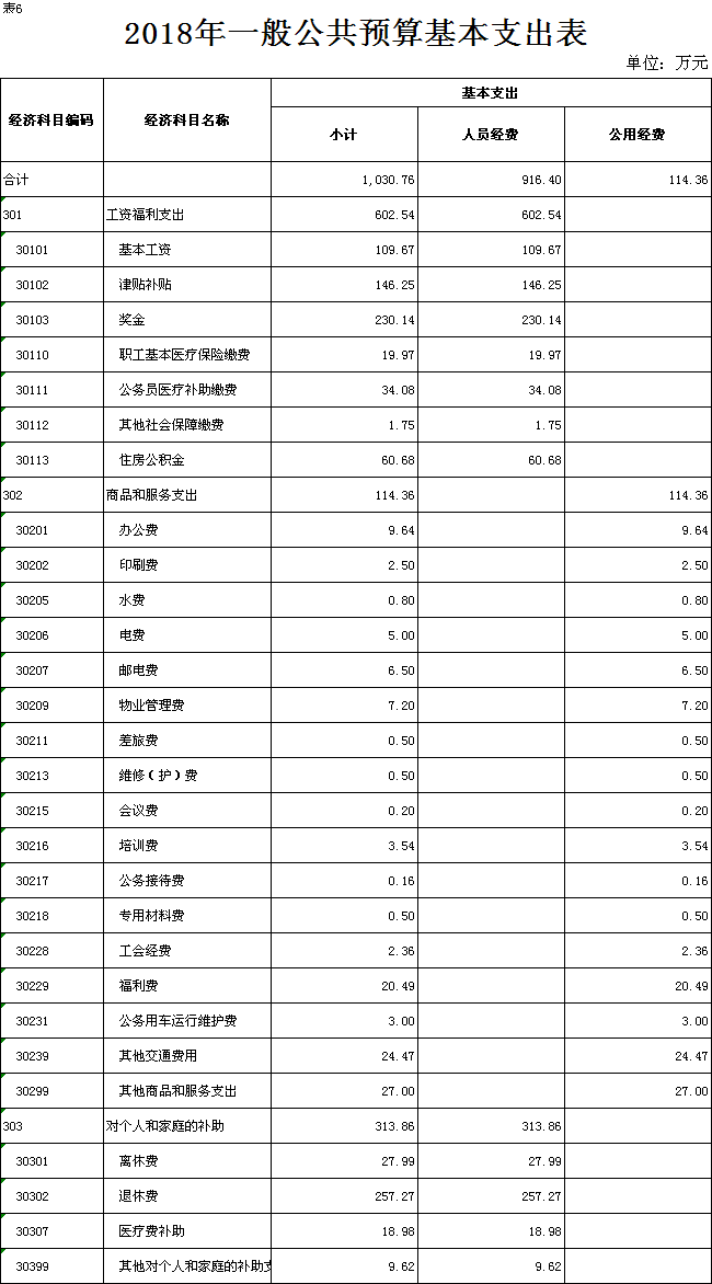 (一)基本支出1030.76万元,较2017年年初预算增加134.35万元,增长13%。