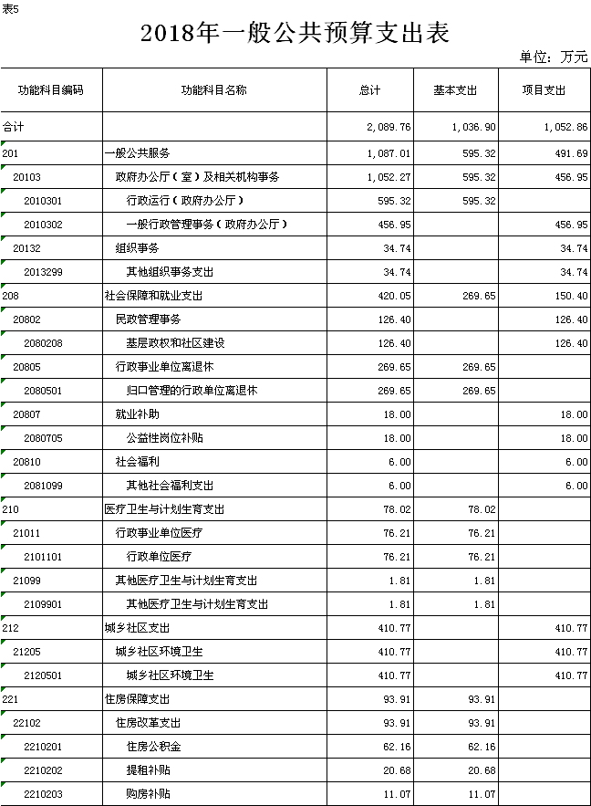 2018年一般公共预算财政拨款(补助)预算数2089.76万元,安排情况如下: