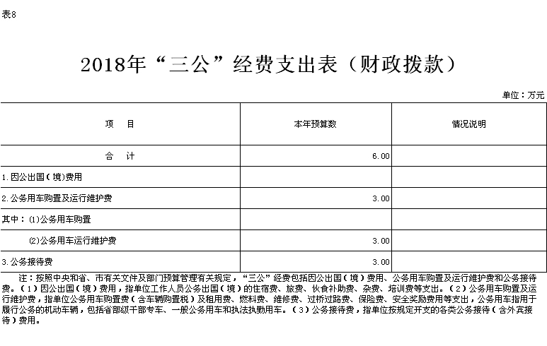 2018年部门预算及“三公”经费财政拨款预算公开情况说明