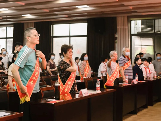 民族街道党工委举行“光荣在党50年”纪念章颁发暨新党员入党宣誓仪式