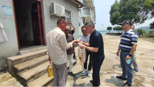 走访慰问,关心关爱脱贫群众。在驻村第一书记王秀国、村党支部书记陈育林的陪同下,两单位领导实地查看了环湖路、水果采摘园等帮扶项目建设情况,重点查看了采摘园内果树生长情况,以及光伏发电项目收益情况。两单位领导高度评价了姚家老屋村目前的产业发展情况,并承诺,未来帮扶单位也将继续大力支持姚家老屋村产业发展,千方百计让富民产业兴起来,让广大老百姓的腰包鼓起来。随后,两单位领导对脱贫户进行走访慰问, 与他们仔细交谈,充分了解脱贫户近期生活情况,耐心听取他们生活上的困难和问题,为其送上米、油等生活物资,并鼓励大家积极发挥主观能动作用,用勤劳双手创造美好生活。