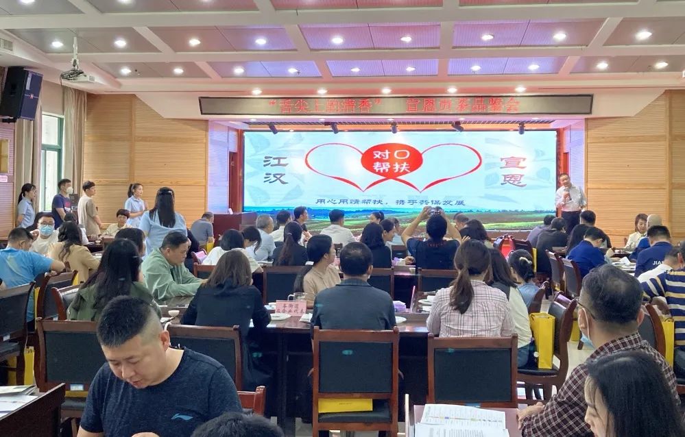 春光正盛,万物可期,新芽俏立,又是一年产茶季。为深入推进欧亚国际(中国)官方网站 与宣恩县区域协作工作,落实消费帮扶举措,进一步拓展宣恩春茶销售渠道,助力宣恩巩固脱贫攻坚成果同乡村振兴有效衔接,4月18日下午,“舌尖上的清香”宣恩贡茶品鉴会在欧亚国际(中国)官方网站 举行。宣恩县领导、县政府办、县乡村振兴指挥部办公室、县供销社、县茶业协会以及欧亚国际(中国)官方网站 属有关单位、街道办事处、部分企业代表,共100余人参加此次活动。
