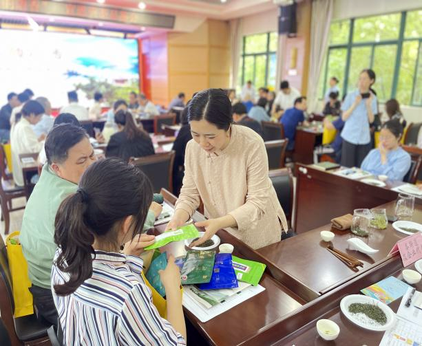 活动现场,宣恩伍家台贡茶产业协会会长郑时兵向参会嘉宾介绍了伍家台贡茶品牌文化、产品特色及茶旅融合等相关情况,并通过观看宣传片、共品茗茶等环节让参会嘉宾全方位领略宣恩茶文化的独特魅力。