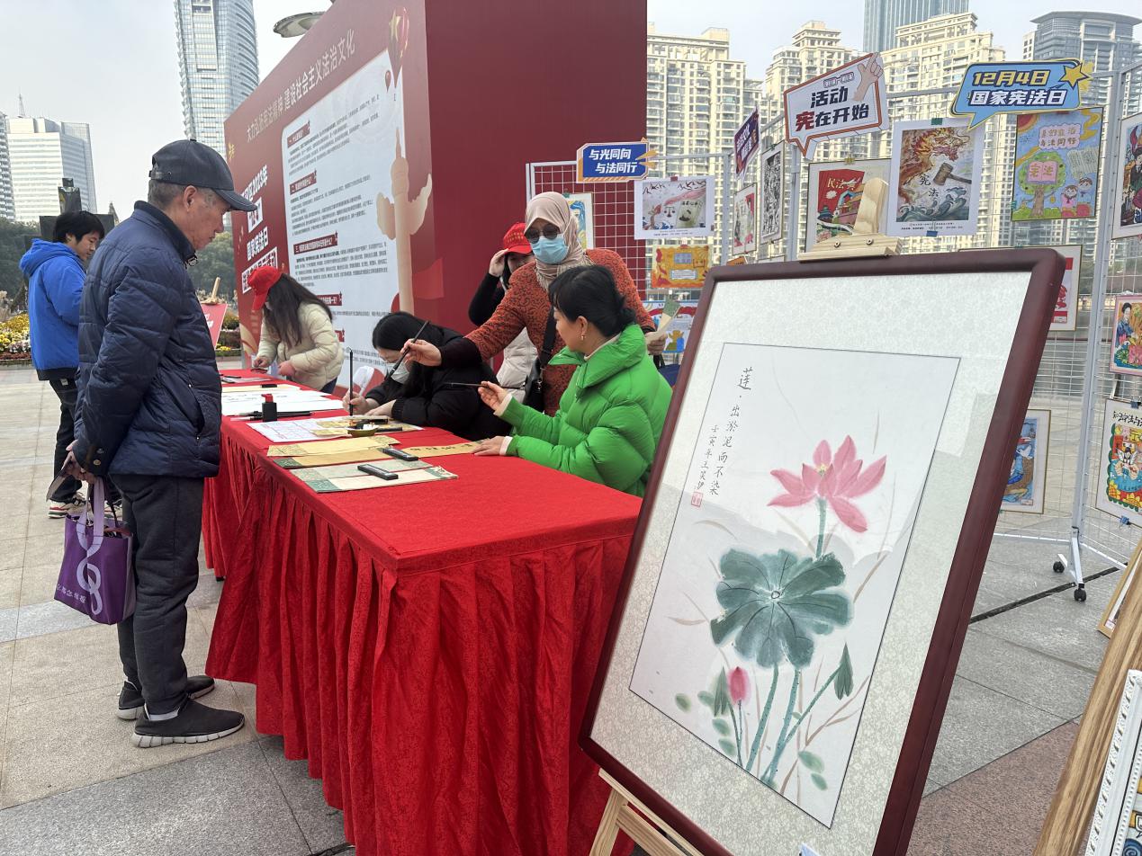丰富的法治文化展示活动,吸引了近600名居民群众的参与。现场分为法治文化展区和互动活动区,包含宪法知识宣传、法治文化作品展览、宪法邮票展示等内容。