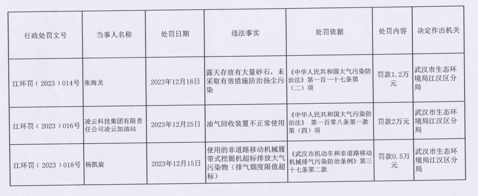 | 标 题 | 2023年武汉市生态环境局欧亚国际(中国)官方网站 分局行政处罚信息(12月) | ||