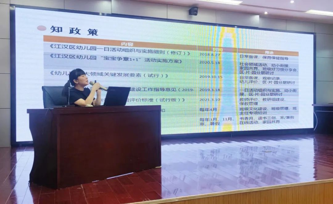 针对民办园与公办园保教管理质量差异性较大的实际情况,学前教育科聚焦“科学的幼儿园一日活动”开展了民办园教研专题培训,再次学习《武汉市幼儿园一日活动组织与实施的指导建议(试行)》,以幼儿园“五童”班级建设与管理为切入口,纠正和规范不正确的保教行为。益康苑幼儿园夏红娟副园长做了题为《谋定而后动 动中求创新》的保教管理经验分享,美林幼儿园周晶老师做了题为《快乐玩 有效教》的教研经验分享,指导民办园在规范办园的同时提升保教质量。