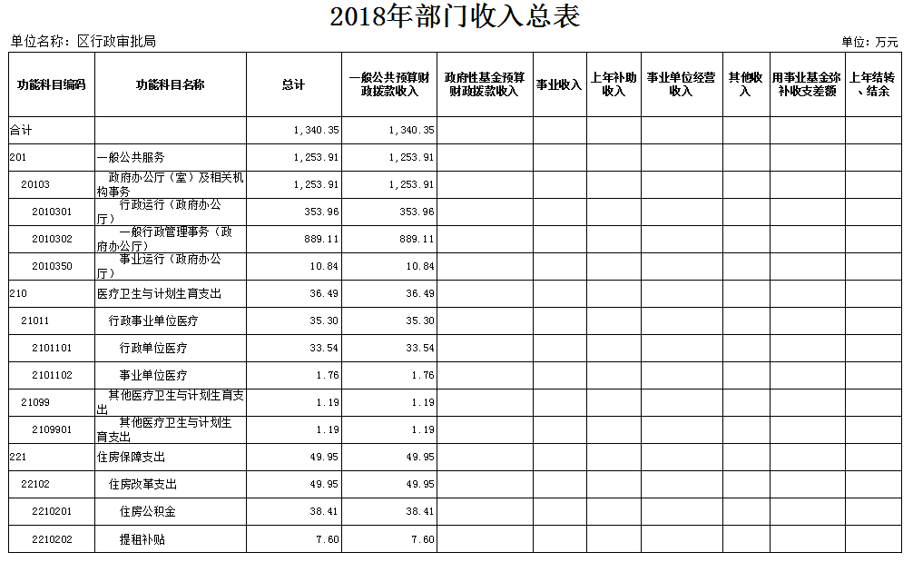 2018年部门预算总收入1,340.35万元,较2017年年初预算增加951.29万元,增长244.51%。其中:一般公共预算财政拨款(补助)收入1,340.35万元。