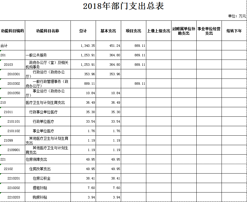 2018年部门预算总支出1,340.35万元,较2017年年初预算增加951.29万元,增长244.51%。其中:一般公共预算财政拨款(补助)支出1,340.35万元,主要用于基本支出451.24万元,项目支出889.11万元。