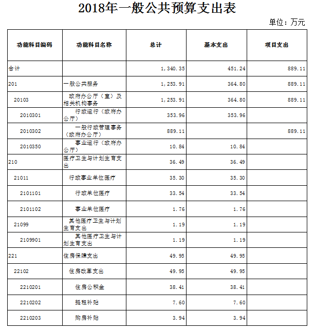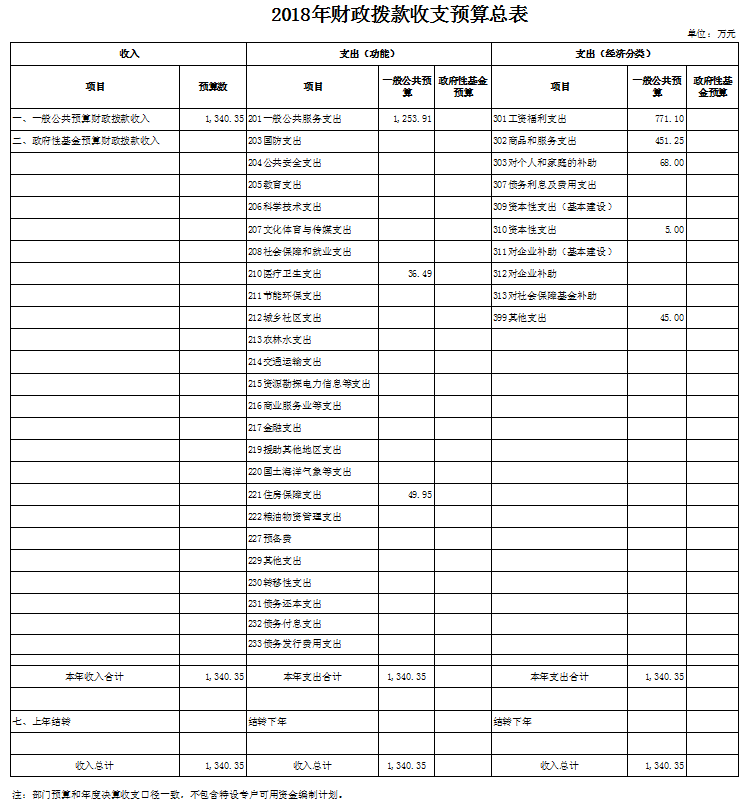 2018年一般公共预算财政拨款(补助)预算数1,340.35万元,安排情况如下: