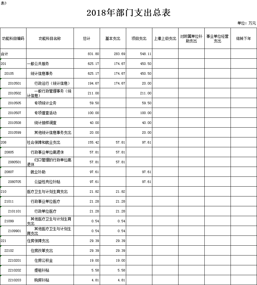 表3.2018年部门支出总表
