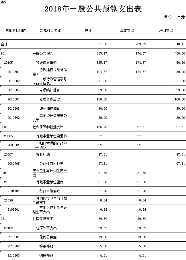 表5.2018年一般公共预算支出表