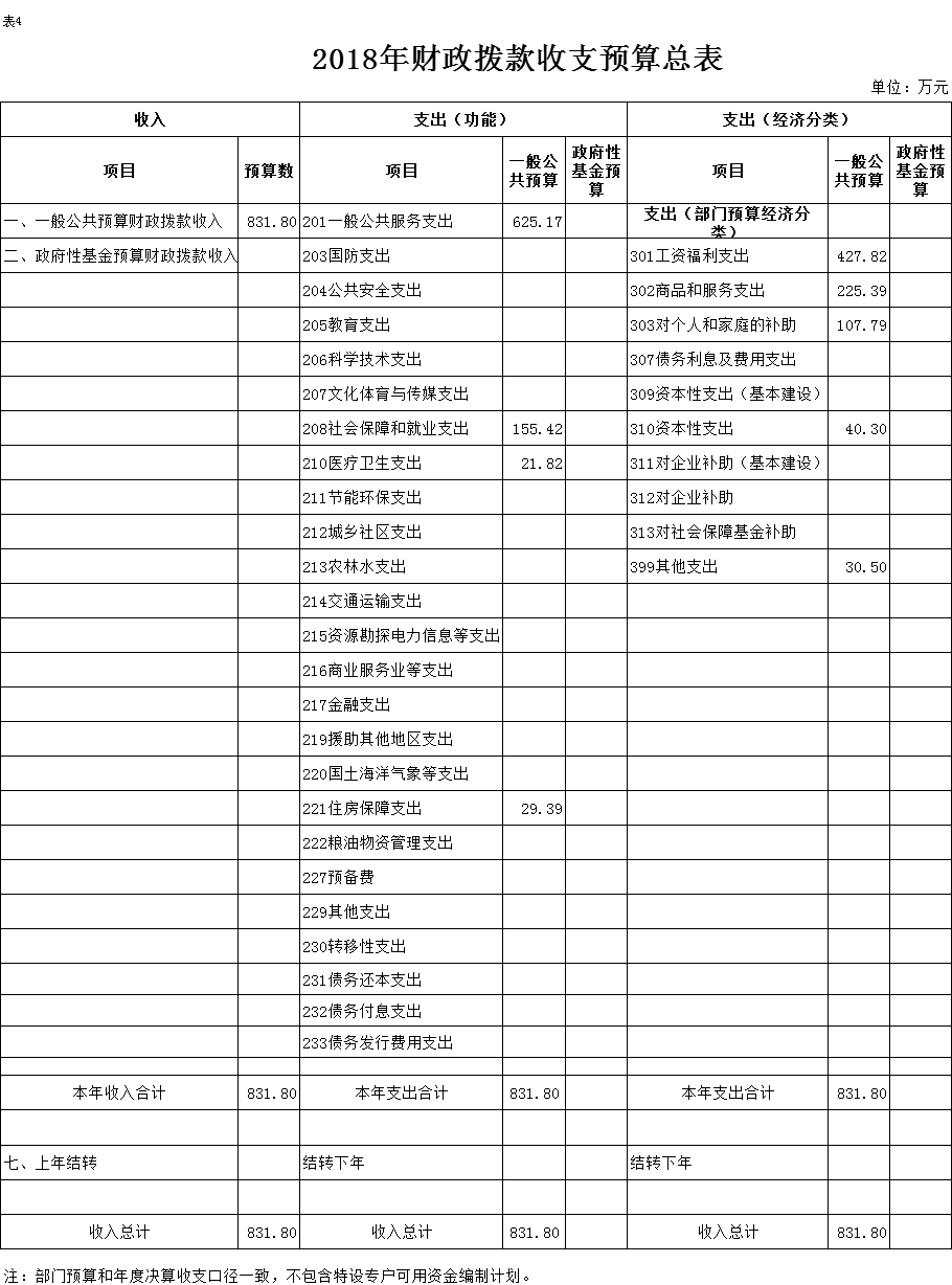 表4.2018年财政拨款收支预算总表