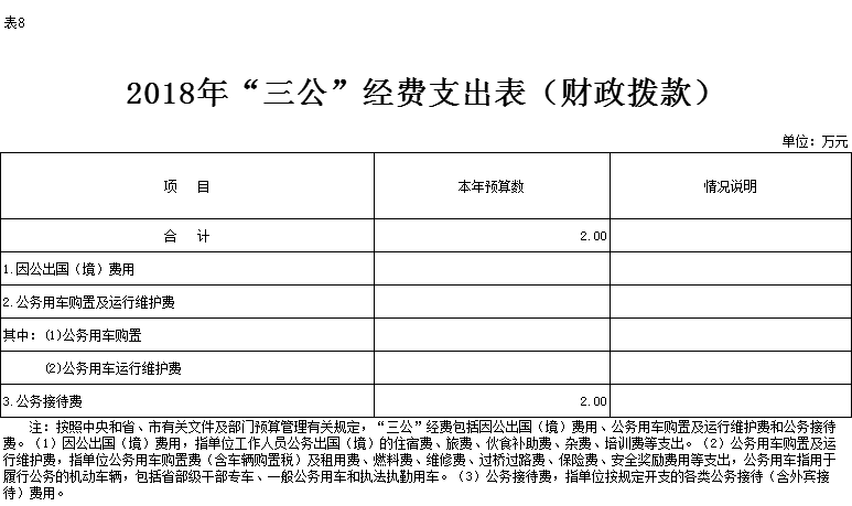 2018年部门预算及“三公”经费财政拨款预算公开情况说明
