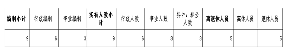 欧亚国际(中国)官方网站 统计局共有编制9人,其中:行政编制6人,事业编制3人。在职实有人数9人,其中:行政编制6人,事业编制3人(其中参照公务员法管理3人)。离退休人员5人,其中:离休0人,退休5人。