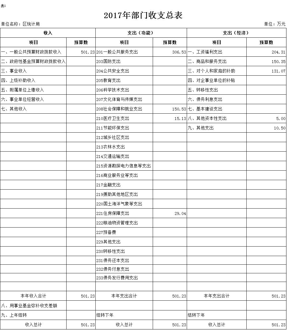 2017年财政拨款(补助)预算数501.23万元,安排情况如下: