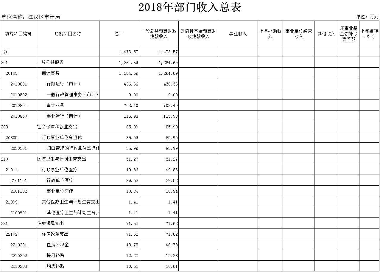 2018年部门预算总收入1473.57万元,较2017年年初预算增加207.26万元,增长16.37%。其中:一般公共预算财政拨款(补助)收入1473.57万元。