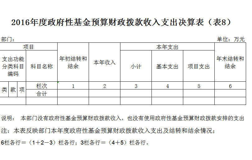 2016年政府性基金预算财政拨款上年结转和结余0万元,本年收入0万元,本年支出0万元,年末结转和结余0万元。